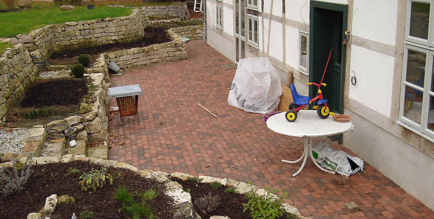 Terrasse: Betonplatten 50/50 6 cm stark rot